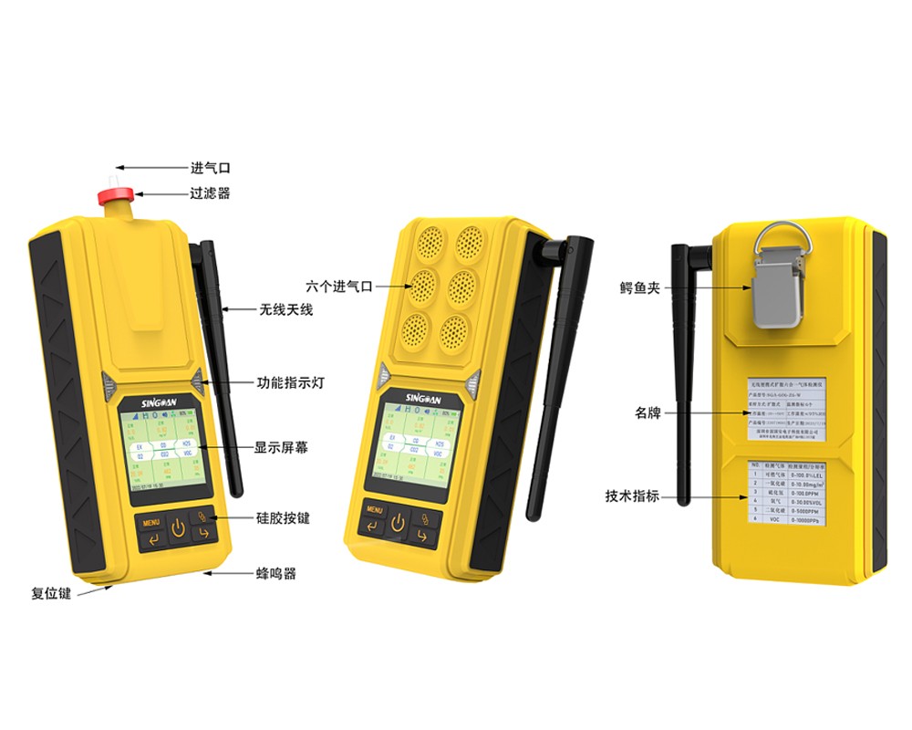 SGA-606系列便攜式復合型八氯化萘氣體檢測儀小巧輕便,功能強大。2.4英寸高清液晶彩屏,實時顯示檢測目標氣體濃度值;內(nèi)置高性能采樣泵,1-10檔流速可調(diào);5000mA超大容量鋰電池,可連續(xù)工作20小時以上;內(nèi)置全生命周期監(jiān)控系統(tǒng),傳感器壽命到期、儀表故障、校準提醒,零點自動修正等一應俱全,還可一鍵復位恢復出廠設置;中文簡體、英文、中文繁體三種語言系統(tǒng),適合所有人群操作。umol/mol、ppm、ppb、%LEL、%VOL、mg/m3、ug/m3、g/m3、mg/l、g/l等濃度單位之間自由切換,氣體濃度值一目了然;支持本地存儲10萬條以上數(shù)據(jù),自動存儲歷史記錄、報警記錄、故障記錄、開關機時間等數(shù)據(jù),數(shù)據(jù)存儲間隔時間1-999秒可調(diào);支持PC-TWA時間加權(quán)平均容許濃度和PC-STEL短時間接觸容許濃度:數(shù)據(jù)可通過儀器自帶的專用軟件通過USB進行導出Excel表格,進行編輯、打印、存儲等工作;標配水阱過濾器,有效過濾粉塵顆粒物和水汽,提高檢測精度,延長傳感器使用壽命;也可選配內(nèi)置無線模塊,通過4G流量卡實時將監(jiān)測數(shù)據(jù)上傳到物聯(lián)網(wǎng)平臺;智能光感控制功能,儀表會自動根據(jù)當前光照度調(diào)節(jié)屏幕亮度;大氣壓指標監(jiān)測,特別適合高海拔環(huán)境下使用;標配鱷魚夾,可在使用過程中真正解放雙手,不影響正常作業(yè);防跌倒報警功能,當人員發(fā)生意外跌倒,檢測儀則會持續(xù)進行報警,提醒其他工作人員及時救援;特別適合進入隧道、管廊、地窖、污水池、下水道、礦井、密閉空間等場所的作業(yè)人員使用;