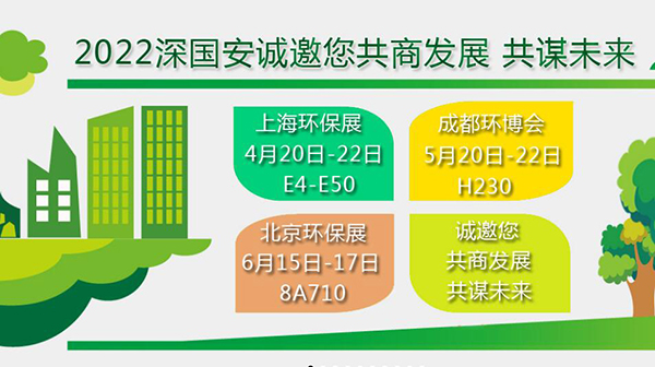預(yù)告,好消息,深國(guó)安電子2022年參展三場(chǎng)重量級(jí)環(huán)保展,時(shí)間安排為第一場(chǎng):4月上海環(huán)保展,第二場(chǎng):5月成都環(huán)博會(huì),第三場(chǎng):6月北京環(huán)保展。有需要參加的客戶及朋友,可咨詢...