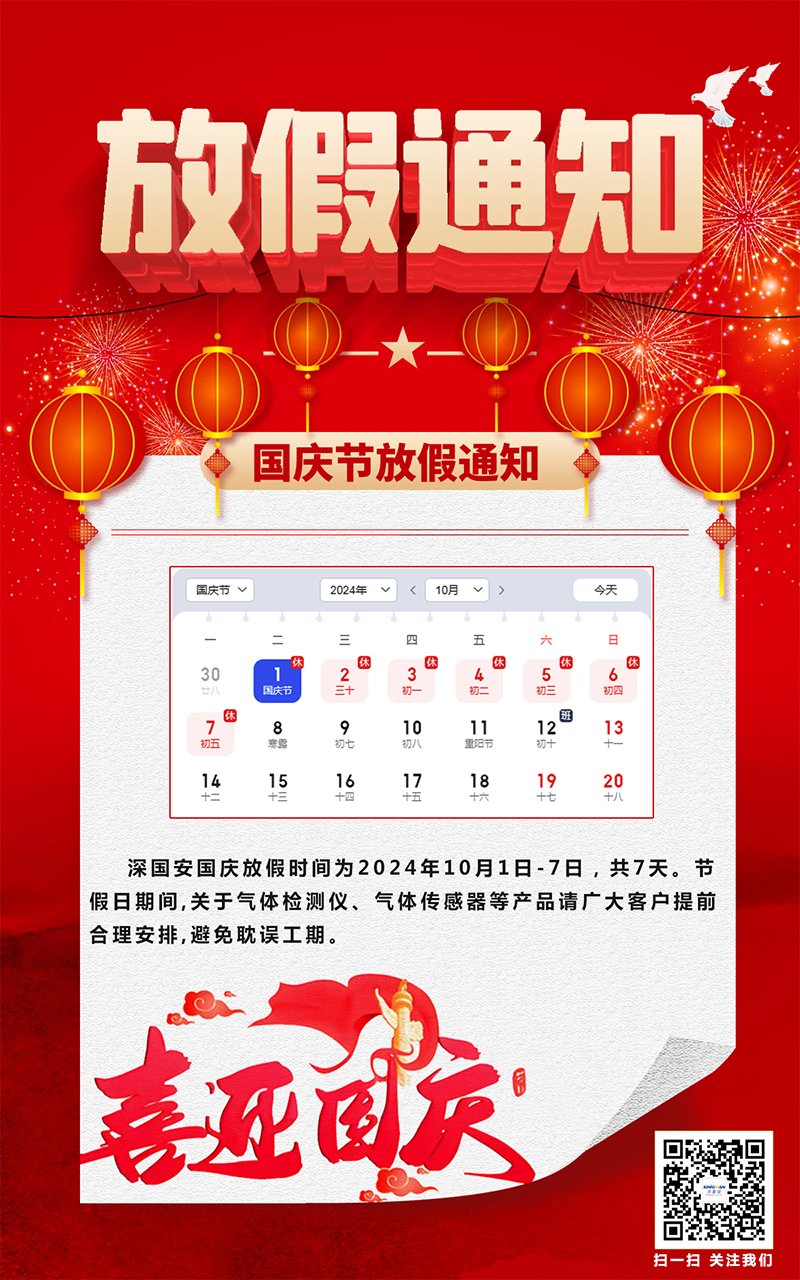 根據(jù)國家節(jié)假日放假規(guī)定及公司的實(shí)際情況,深國安國慶放假安排如下:放假時(shí)間:2024年10月1日至10月7日,共計(jì)7天,10月8日星期二,正式上班。(放假期間正常接單,節(jié)后統(tǒng)一安...