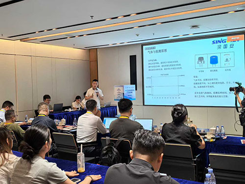 決賽現(xiàn)場(chǎng),深國(guó)安總經(jīng)理張繼國(guó)介紹了其自主研發(fā)的智能氣體傳感器前沿技術(shù)成果,傳感器采用全新設(shè)計(jì)理念,將集成模塊化,實(shí)現(xiàn)不同氣體傳感器的靈活組合與替換,極大地提高了傳感器的通用性和可維護(hù)性,同時(shí)大幅降低使用成本。智能氣體傳感器家族涵蓋電化學(xué)、催化燃燒、熱傳導(dǎo)式、光離子化(PID)、非分光紅外(NDIR)等多原理技術(shù)應(yīng)用,針對(duì)不同氣體檢測(cè)場(chǎng)景構(gòu)建了完整技術(shù)矩陣。該模塊技術(shù)將傳感器芯片、信號(hào)處理單元、智能算法模塊集成于尺寸僅21.5mm×31mm 的封裝內(nèi),通過(guò)內(nèi)置的32位雙核處理器實(shí)現(xiàn)每秒200次的動(dòng)態(tài)數(shù)據(jù)校準(zhǔn),在- 40℃至70℃的極端環(huán)境下仍能保持±3%FS的檢測(cè)精度,較傳統(tǒng)產(chǎn)品體積縮小60%,功耗降50%。