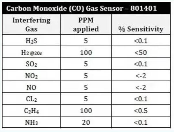 (10)這些化學(xué)過濾器的有限壽命不同于電化學(xué)氣體室的壽命。因此,CO氣體傳感器在大量暴露于某些干擾氣體后,對這些干擾氣體的交叉靈敏度會(huì)增加。